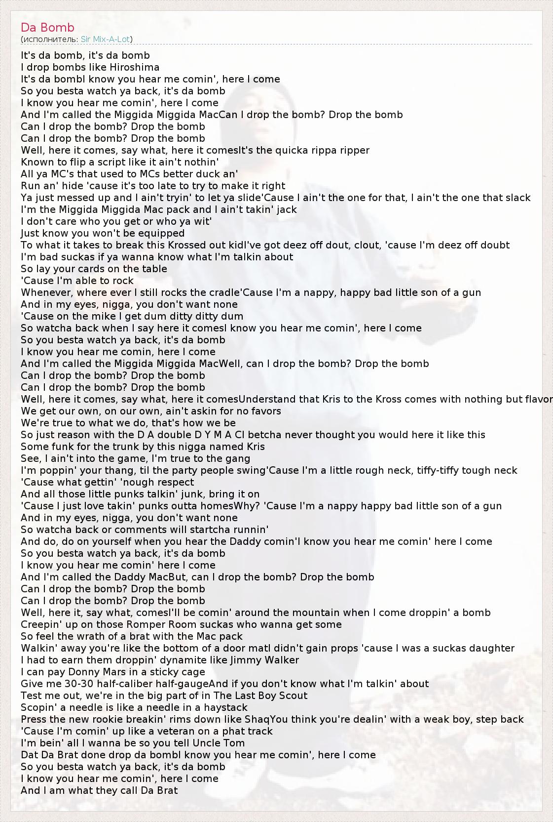 А как ты думаешь, о чем песня "Da Bomb" ?