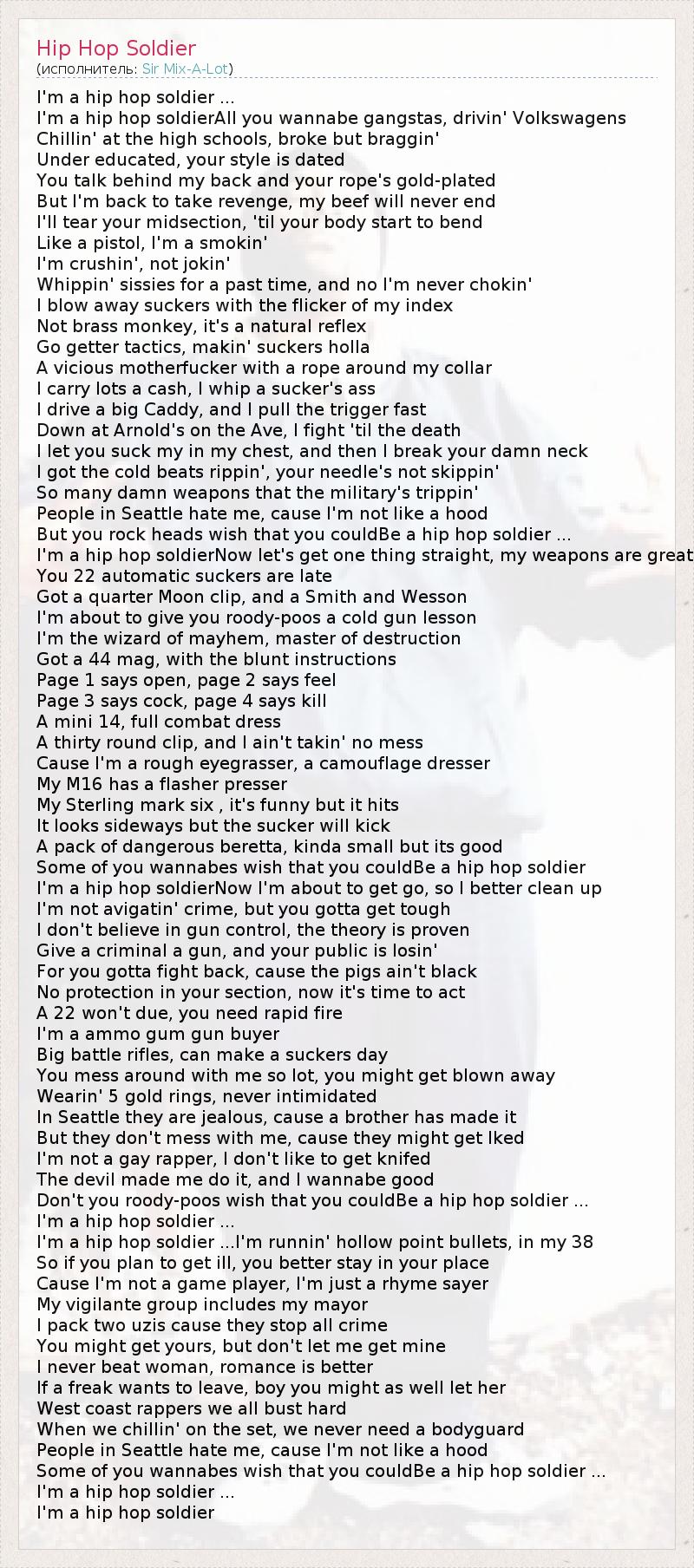 А как ты думаешь, о чем песня "Hip Hop Soldier" ?