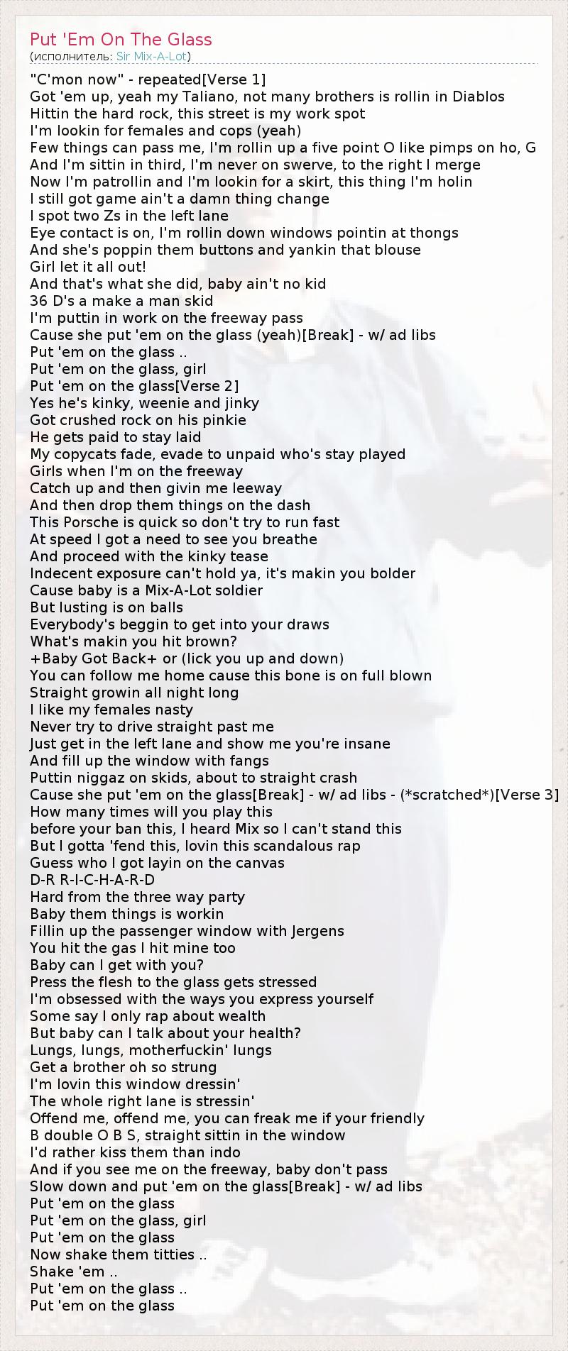 Cause she put 'em on the glass (yeah)[Break] - w/ ad libs
