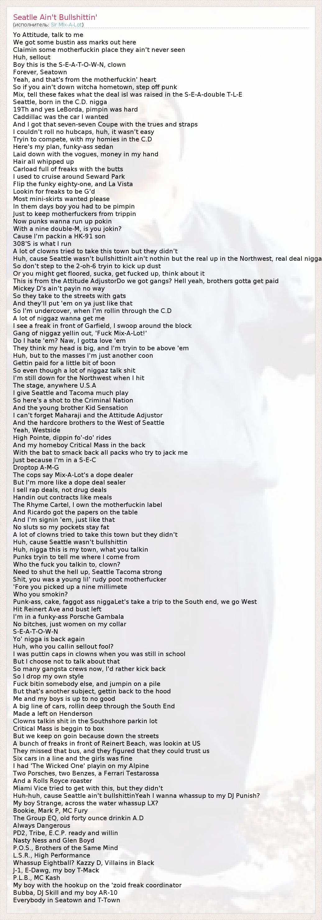 А как ты думаешь, о чем песня "Seatlle Ain't Bullshittin'" ?
