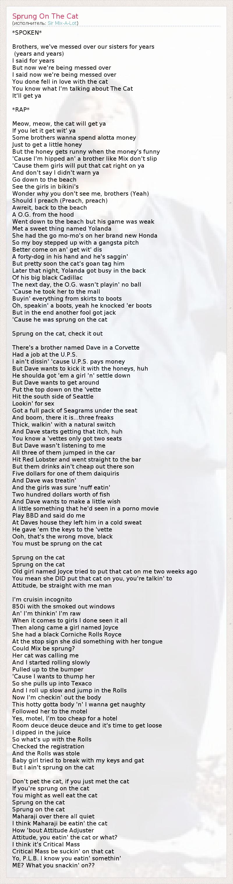 А как ты думаешь, о чем песня "Sprung On The Cat" ?