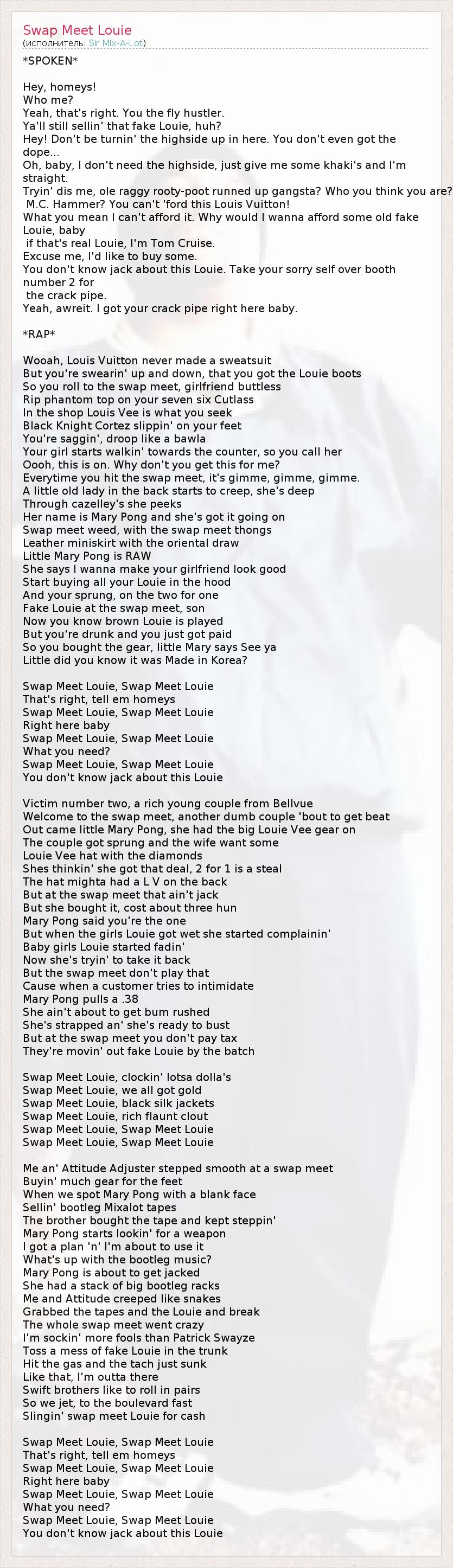 А как ты думаешь, о чем песня "Swap Meet Louie" ?