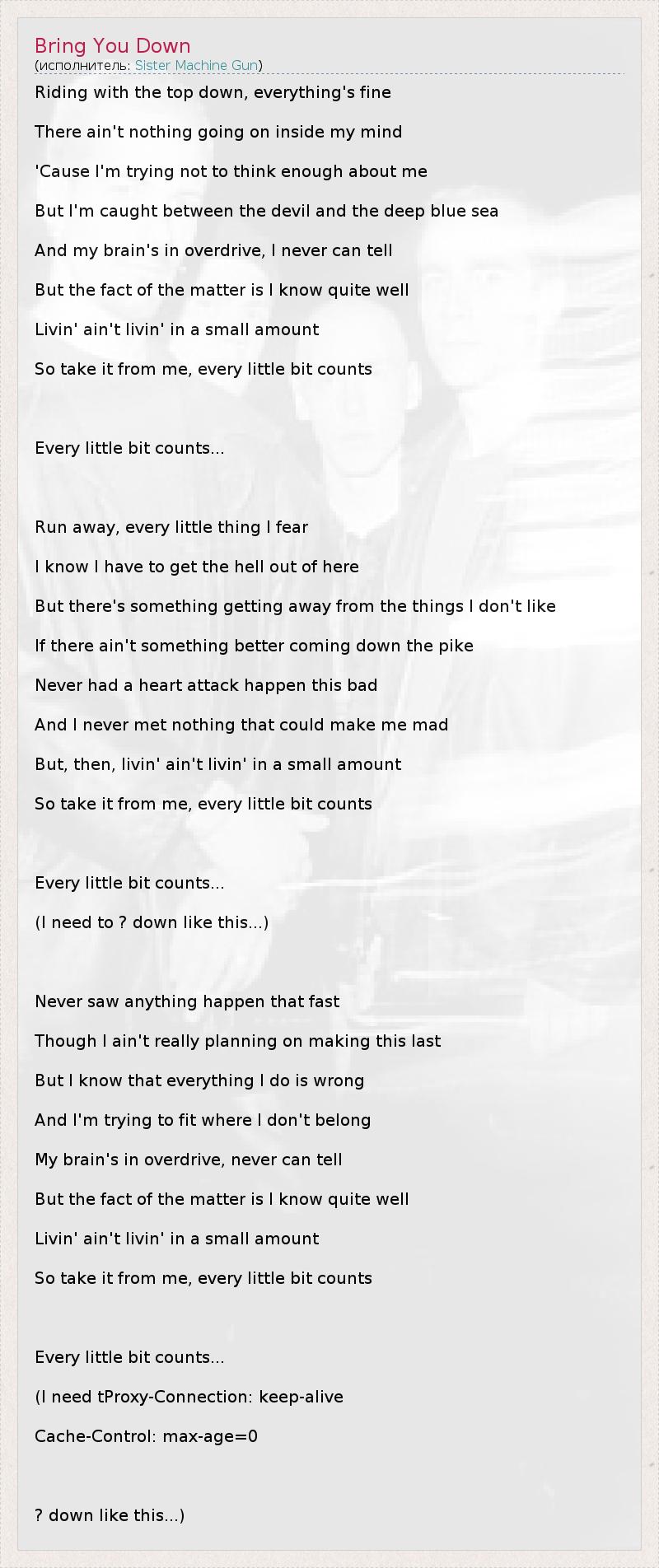 А как ты думаешь, о чем песня "Bring You Down" ?
