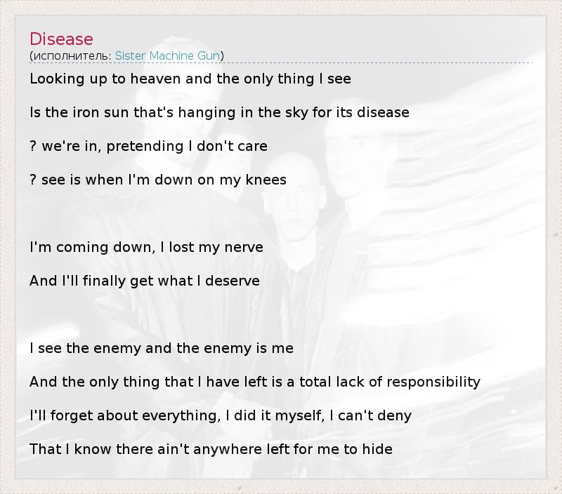 Это интересно:Чикагская группа Sister Machine Gun была основана в самом начале 90-х годов Крисом Рэндаллом (Chris Randall). Работающий на студии Wax Trax! водителем, Крис параллельно записал демонстрационную ленту и передал ее музыкантам из KMFDM, с которыми разъезжал по гастролям. KMFDM рекомендовали Криса руководству лейбла, и вскоре с Sister Machine Gun был подписан контракт. Примерно в это же время в состав группы входит Крис Келли... продолжение