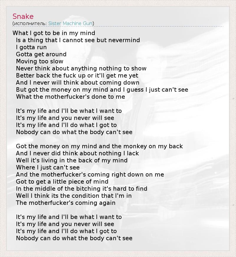 А как ты думаешь, о чем песня "Snake" ?