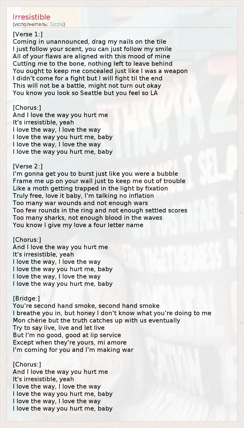 And I love the way you hurt me