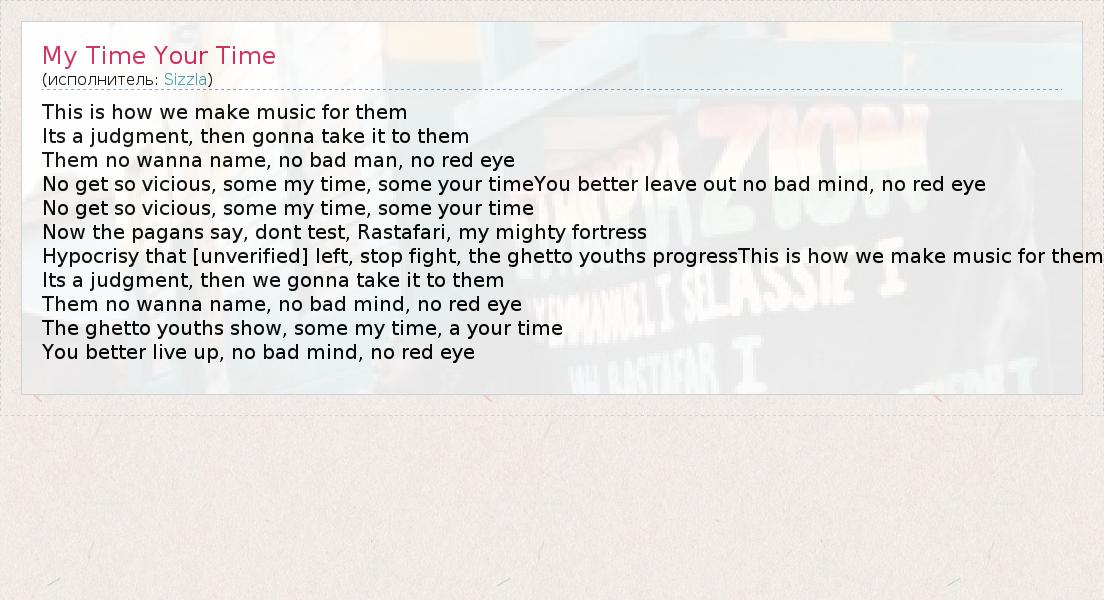 А как ты думаешь, о чем песня "My Time Your Time" ?