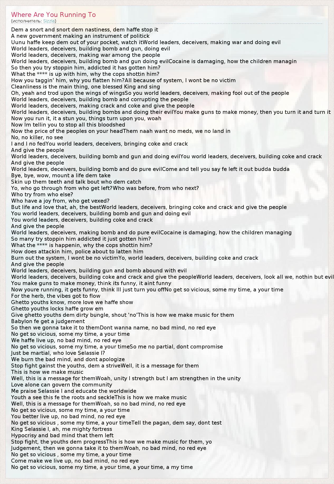 А как ты думаешь, о чем песня "Where Are You Running To" ?