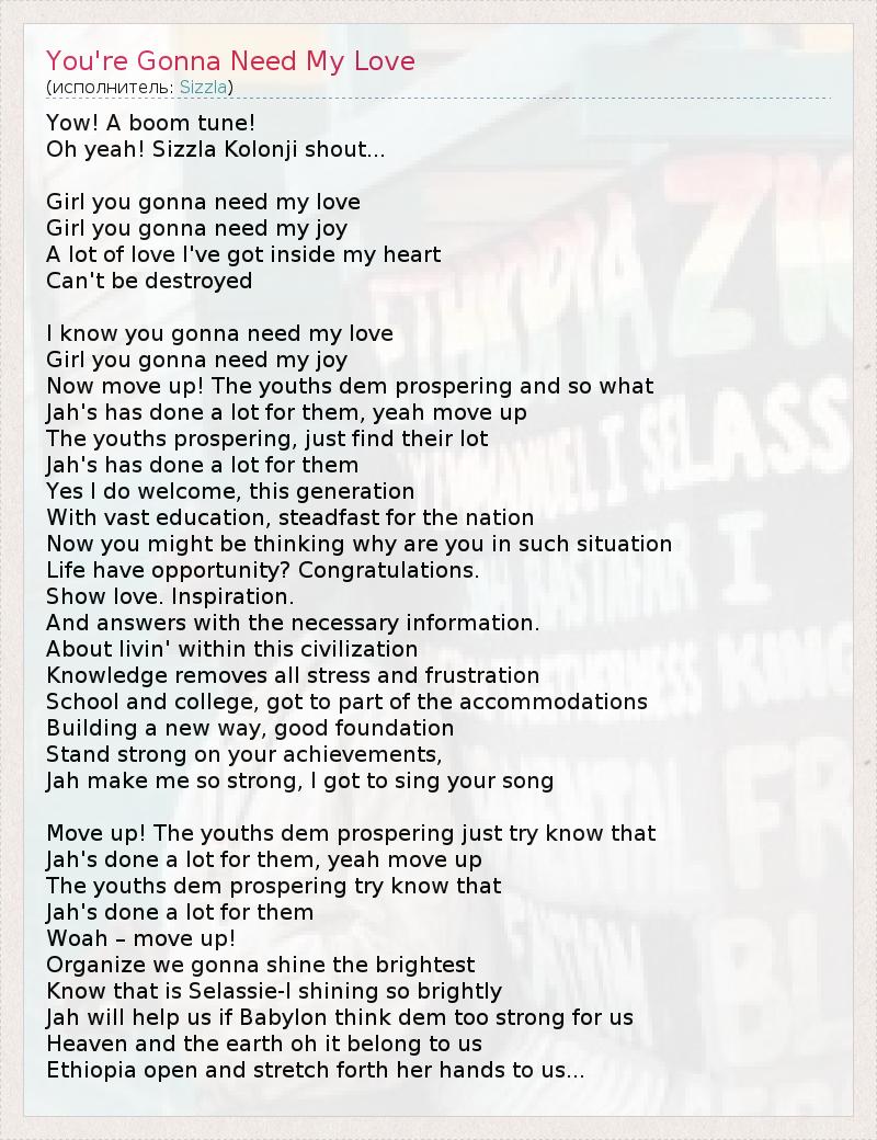 А как ты думаешь, о чем песня "You're Gonna Need My Love" ?