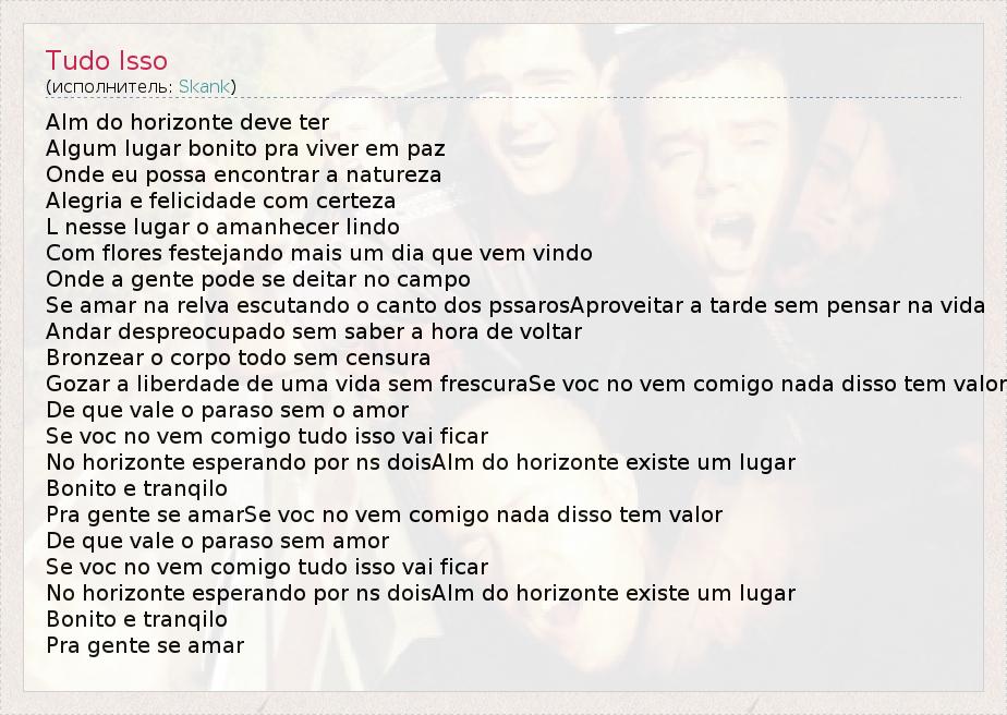А как ты думаешь, о чем песня "Tudo Isso" ?