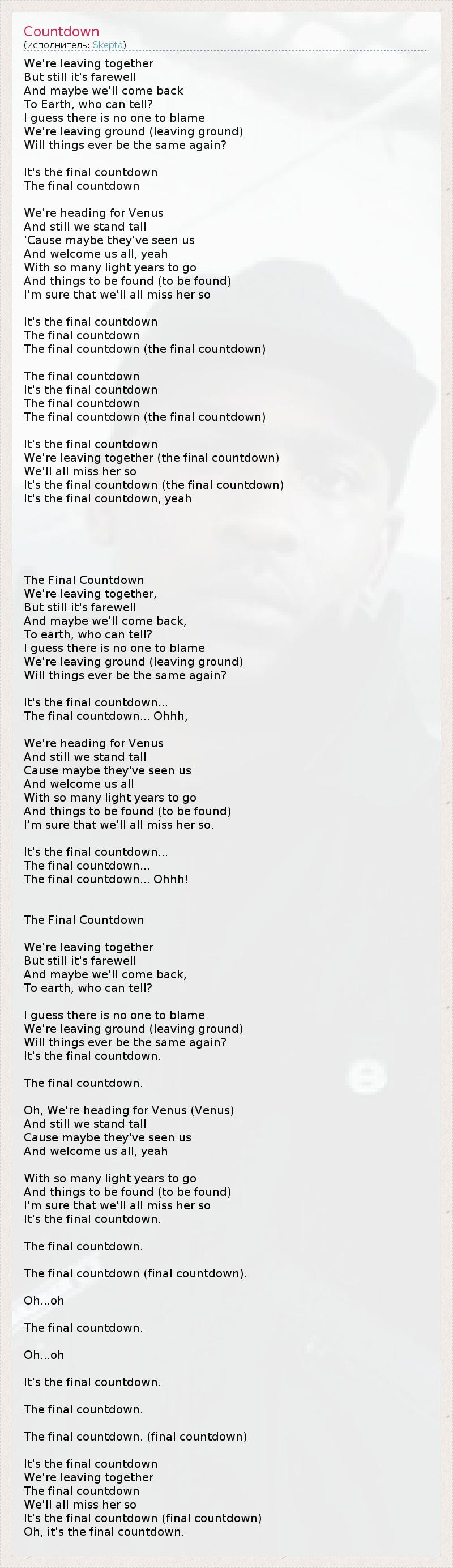 Финальный отсчёт** (перевод Евгений Алексеев-Пятыгин из Алма-Аты)