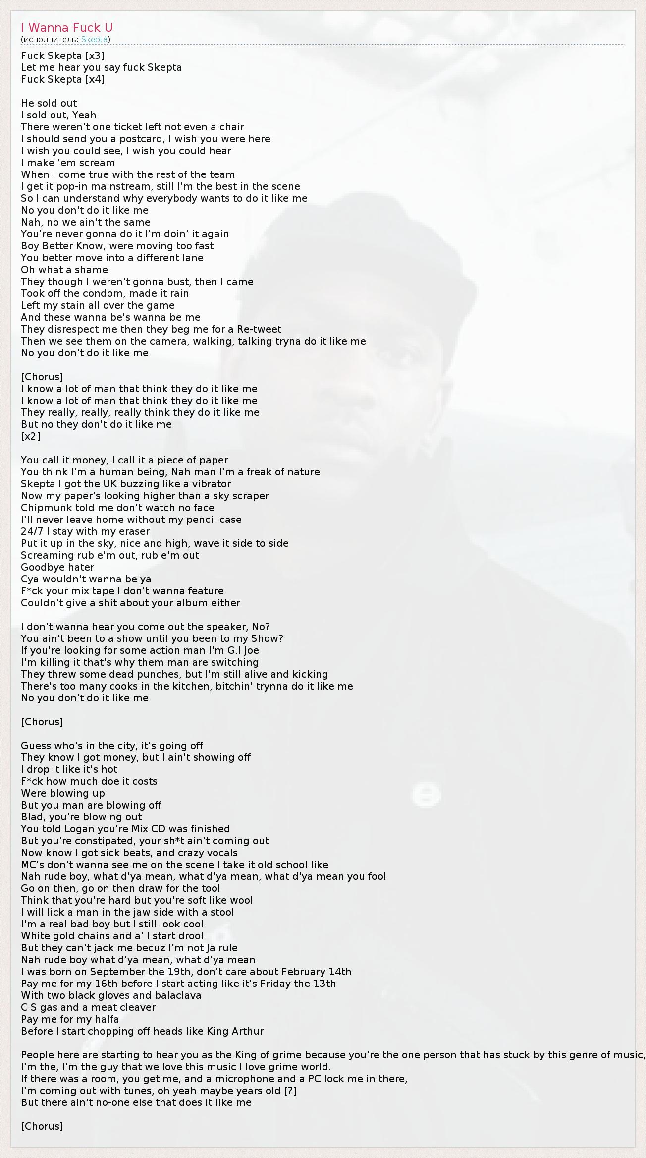 А как ты думаешь, о чем песня "I Wanna Fuck U" ?