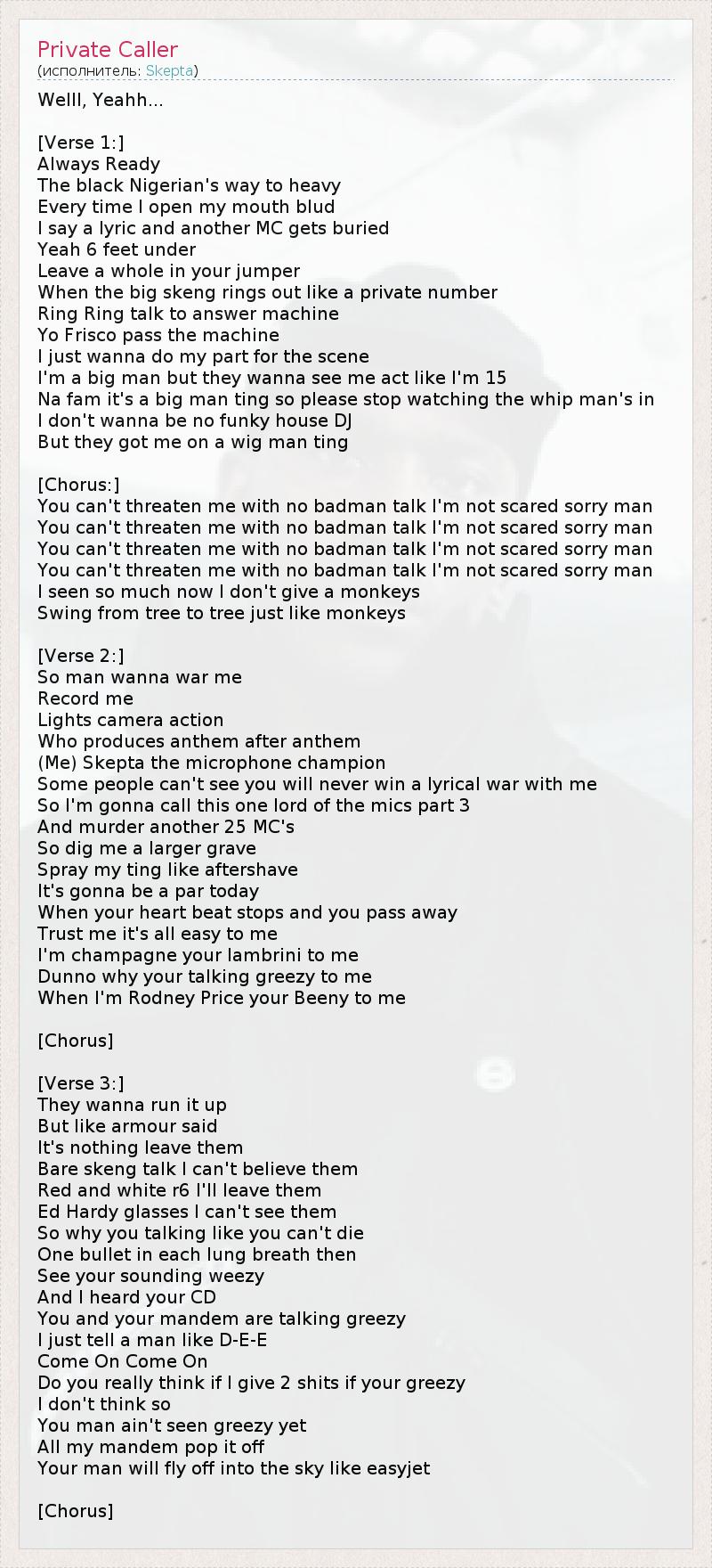 А как ты думаешь, о чем песня "Private Caller" ?