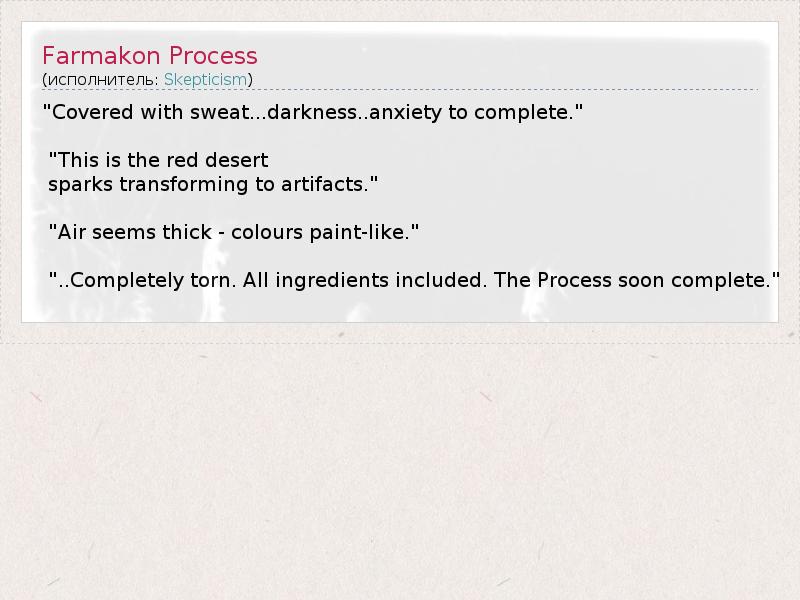 А как ты думаешь, о чем песня "Farmakon Process" ?