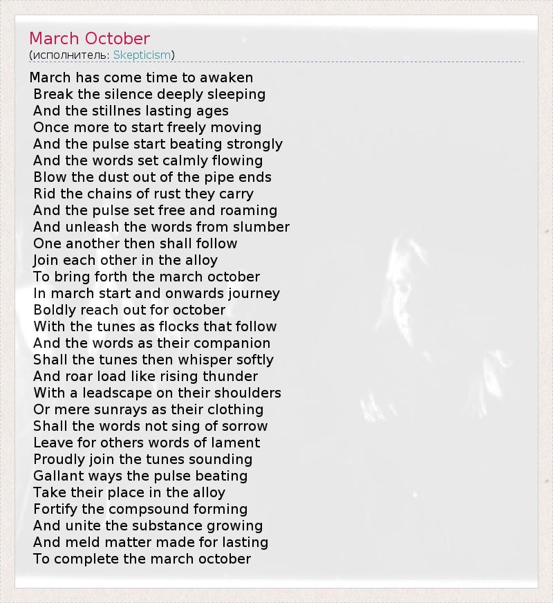 А как ты думаешь, о чем песня "March October" ?