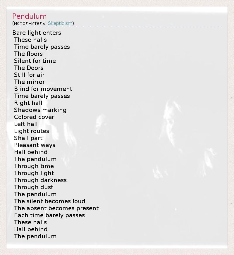 Это интересно:«Для слушателя музыканты группы Skepticism живут только в звуках, ими созданных, и в текстах — как некие полумифологические персонажи. Наши имена, наша жизнь вне группы не важны и неинтересны» — так решили они с самого начала. Один из таинственных участников коллектива Eero говорит: «Наше название мы придумали где-то в начале прошлого десятилетия, по причине, которую теперь уже трудно... продолжение