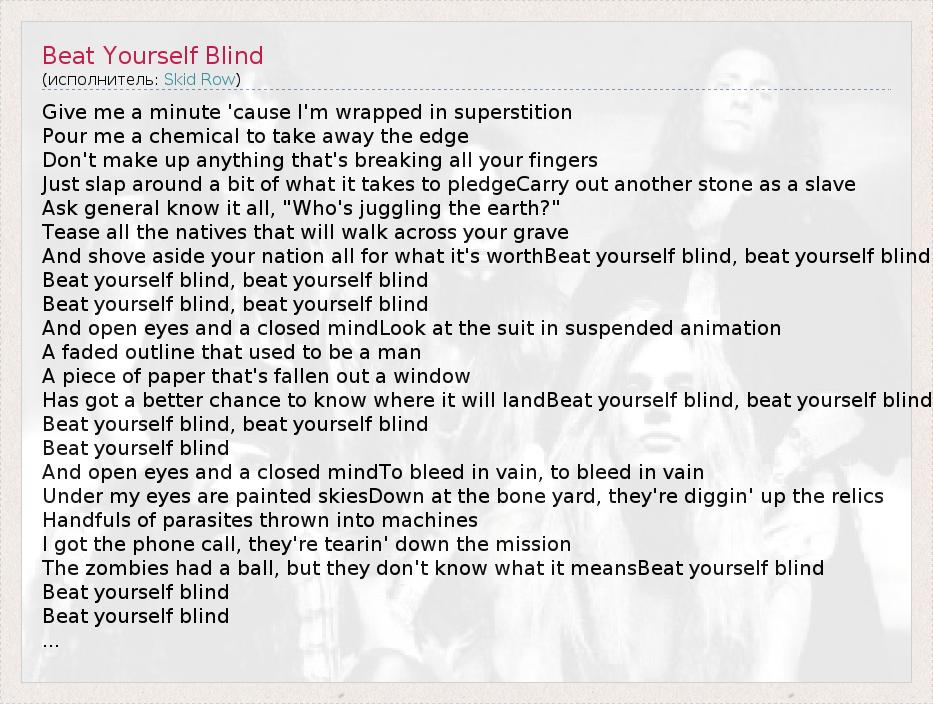А как ты думаешь, о чем песня "Beat Yourself Blind" ?