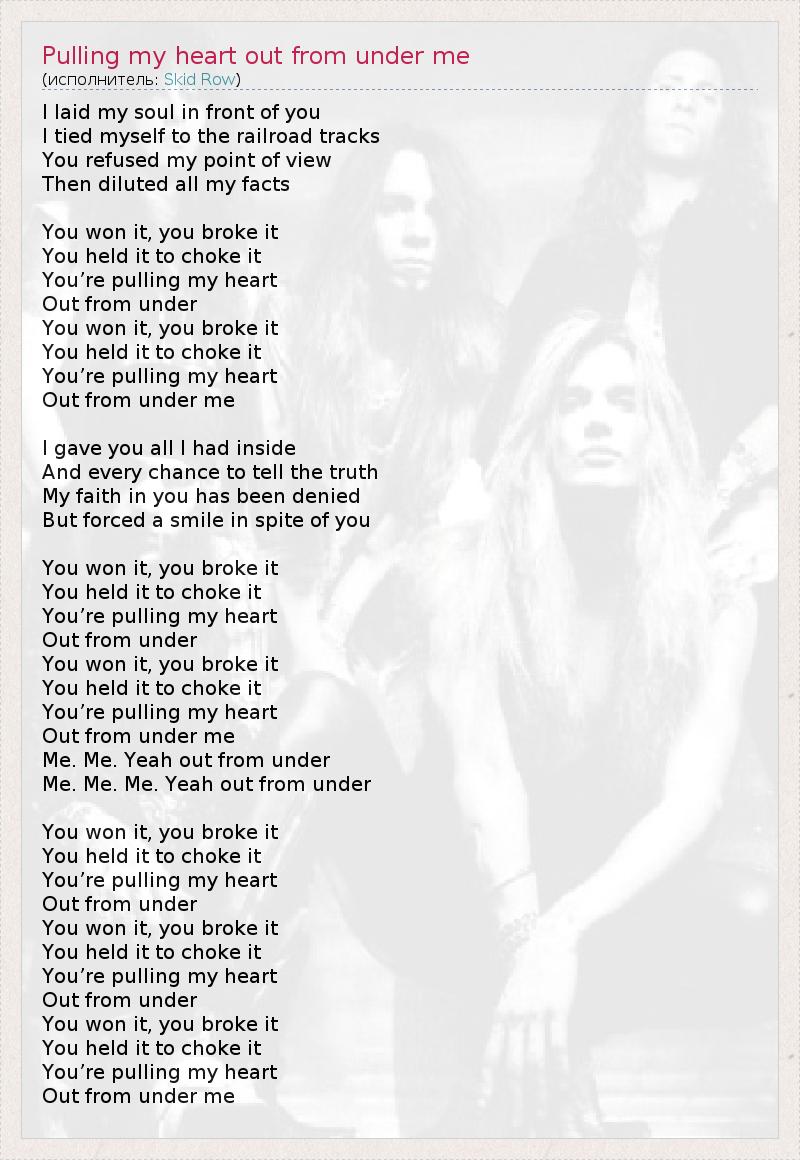 А как ты думаешь, о чем песня "Pulling my heart out from under me" ?