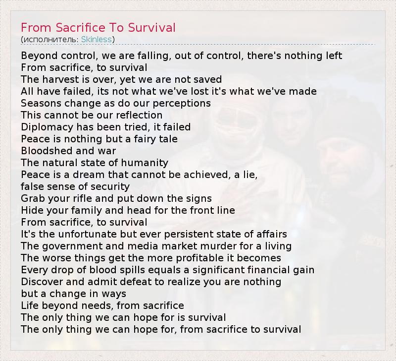 А как ты думаешь, о чем песня "From Sacrifice To Survival" ?