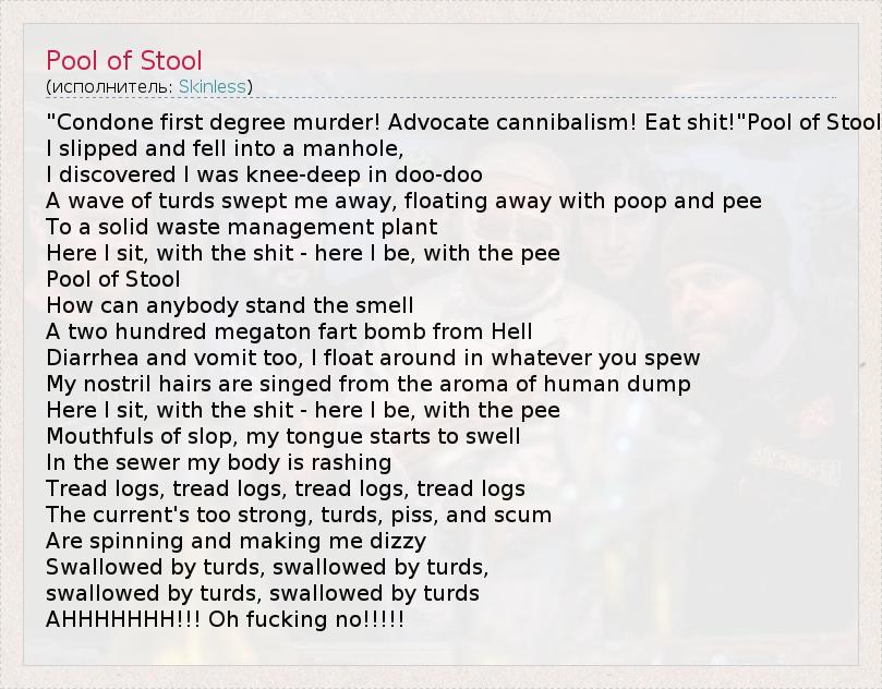 А как ты думаешь, о чем песня "Pool of Stool" ?