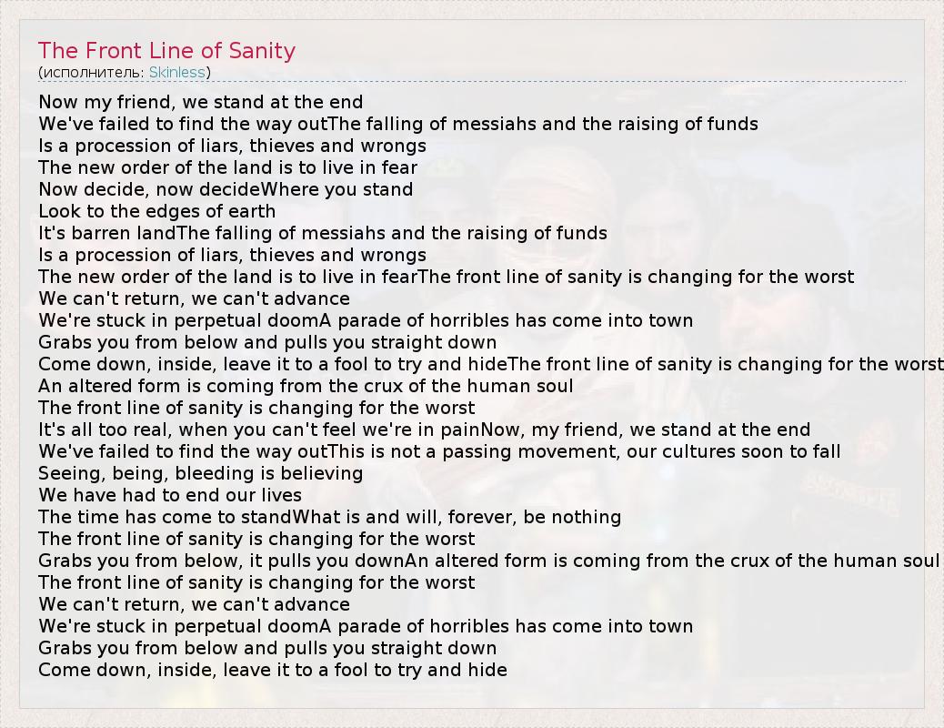 А как ты думаешь, о чем песня "The Front Line of Sanity" ?