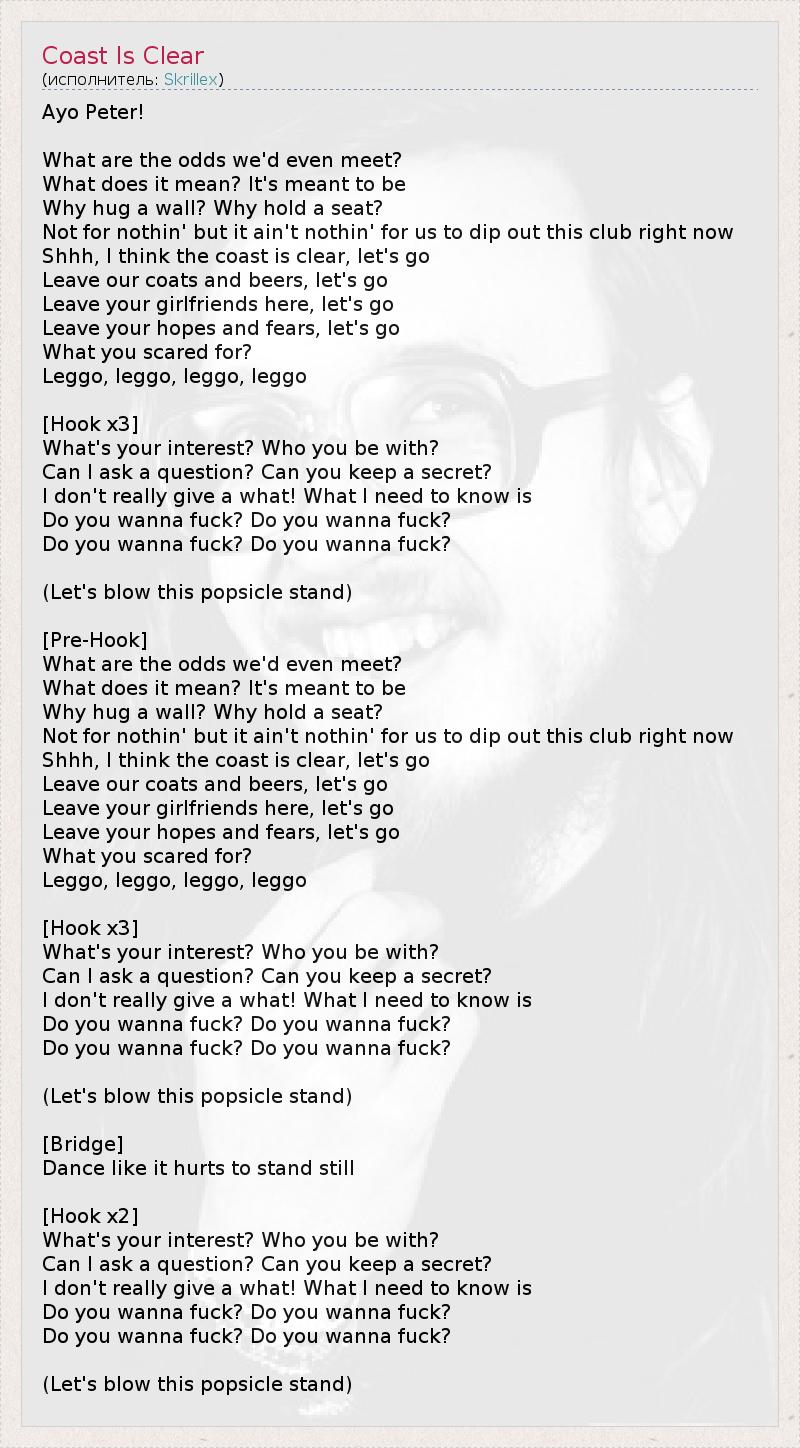 А как ты думаешь, о чем песня "Coast Is Clear" ?