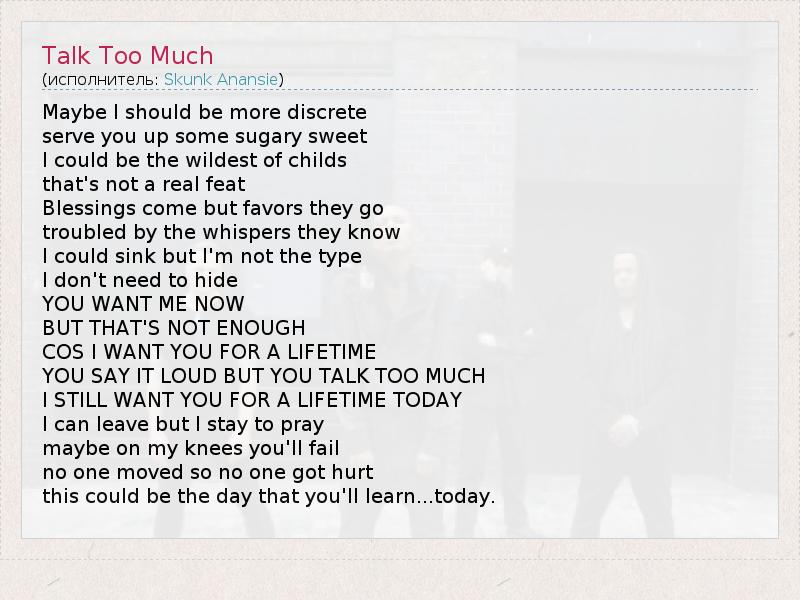 А как ты думаешь, о чем песня "Talk Too Much" ?