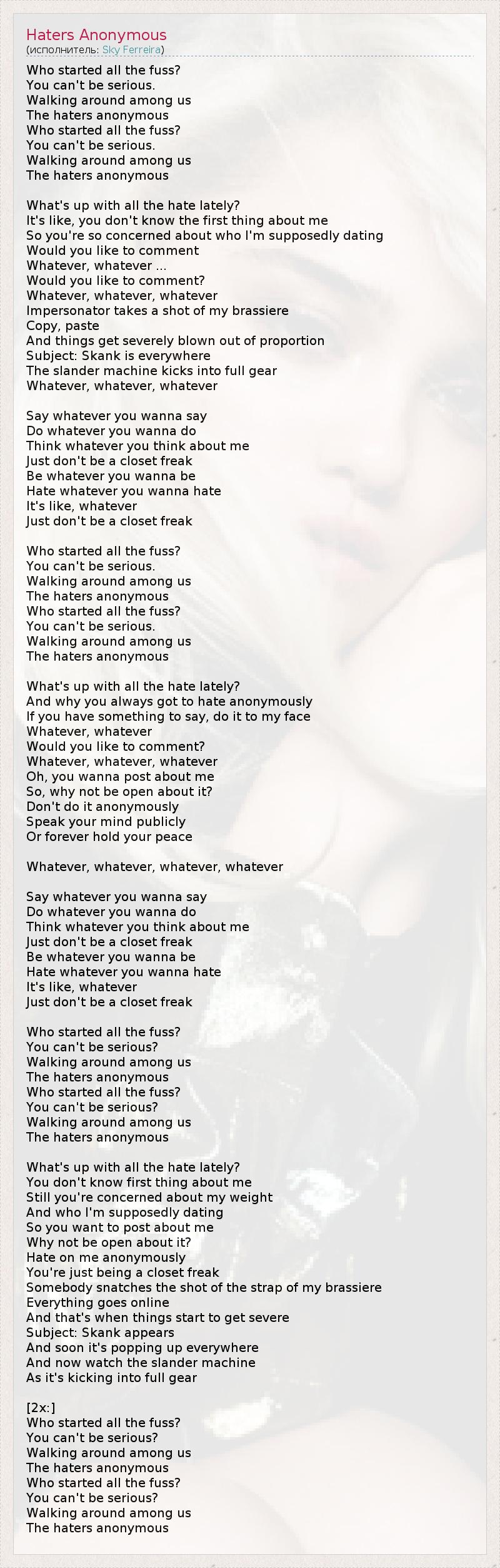 А как ты думаешь, о чем песня "Haters Anonymous" ?