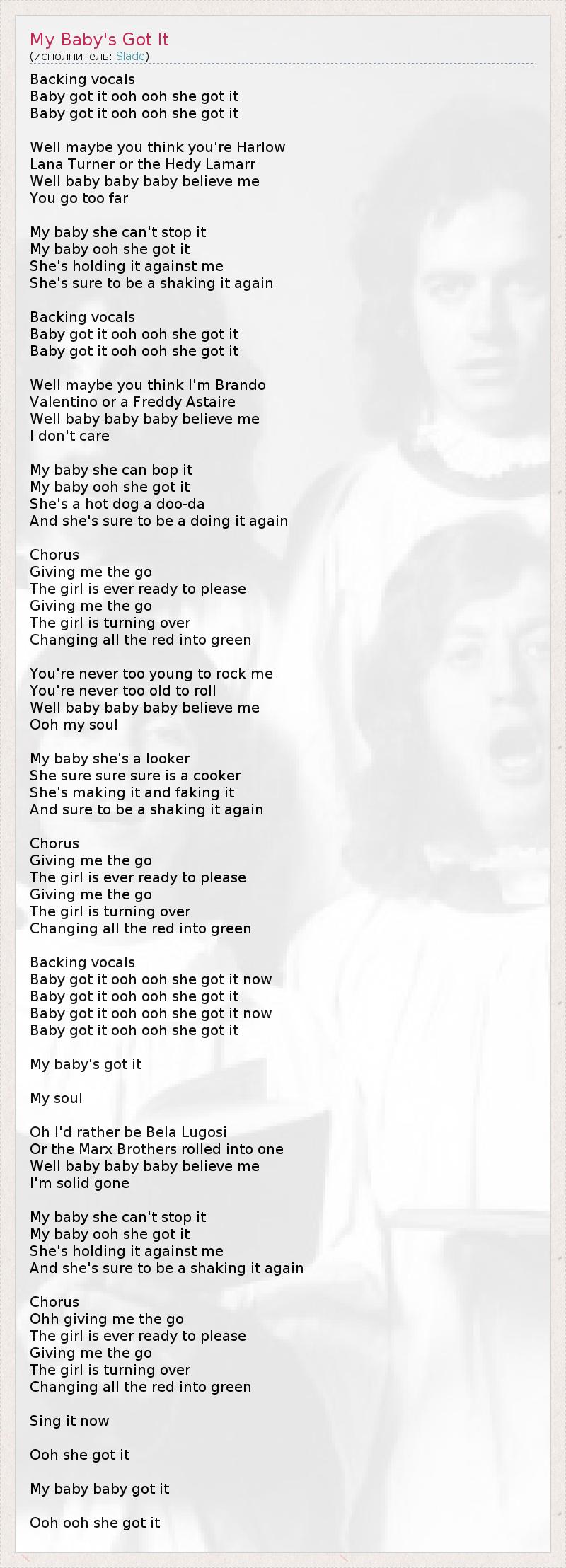 А как ты думаешь, о чем песня "My Baby's Got It" ?