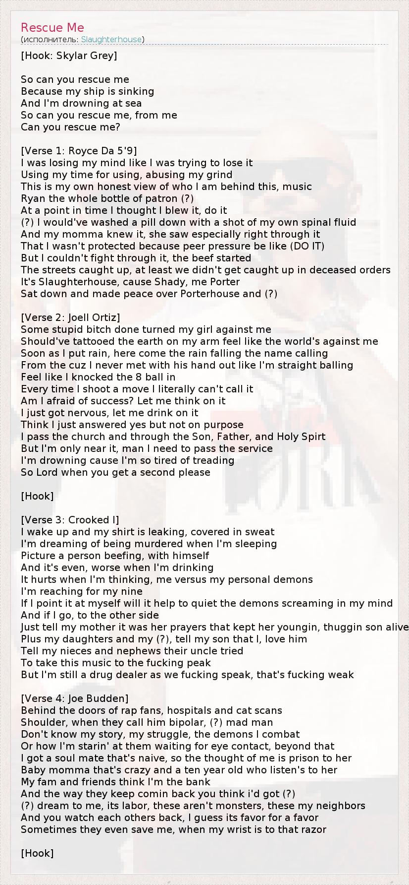 А как ты думаешь, о чем песня "Rescue Me" ?