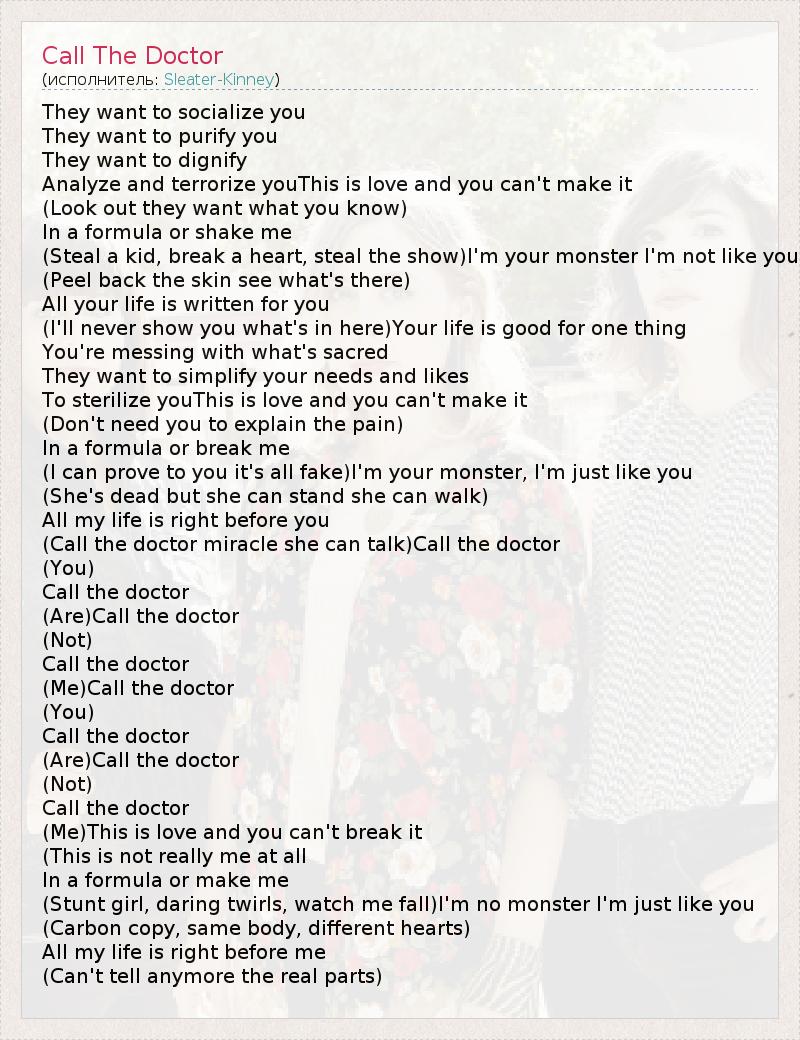А как ты думаешь, о чем песня "Call The Doctor" ?