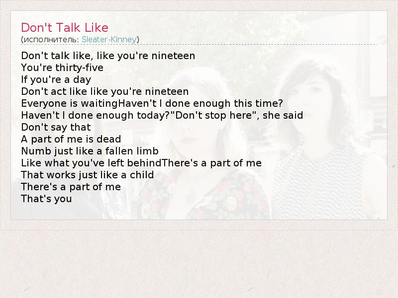 А как ты думаешь, о чем песня "Don't Talk Like" ?