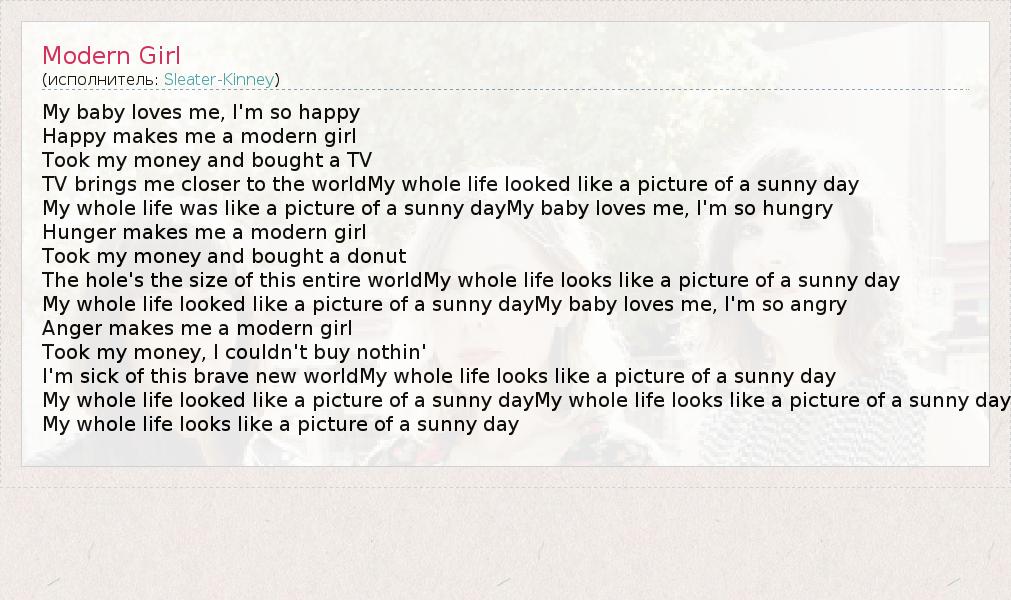 А как ты думаешь, о чем песня "Modern Girl" ?