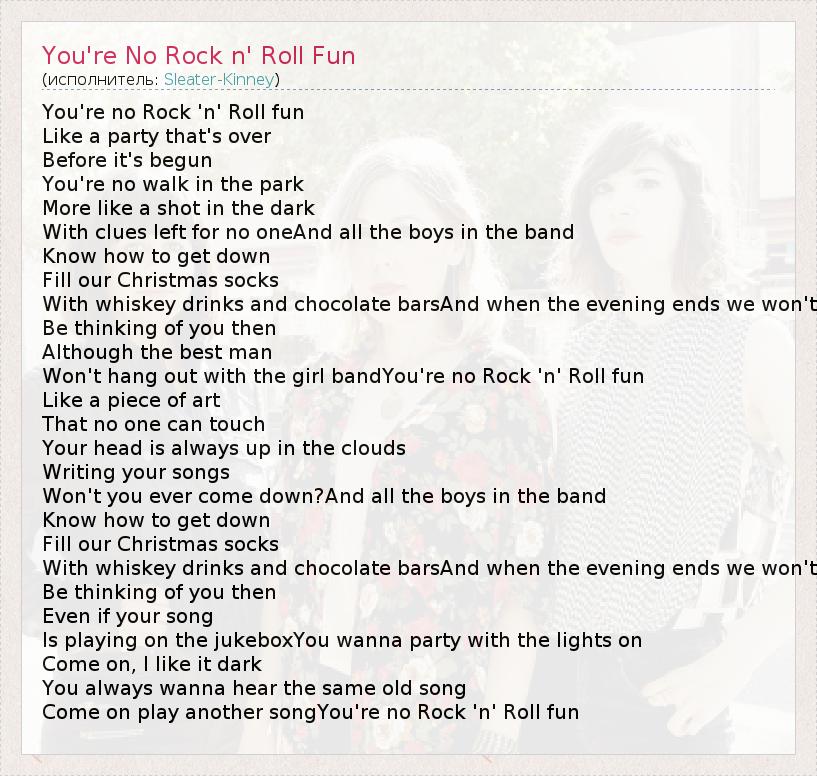 А как ты думаешь, о чем песня "You're No Rock n' Roll Fun" ?