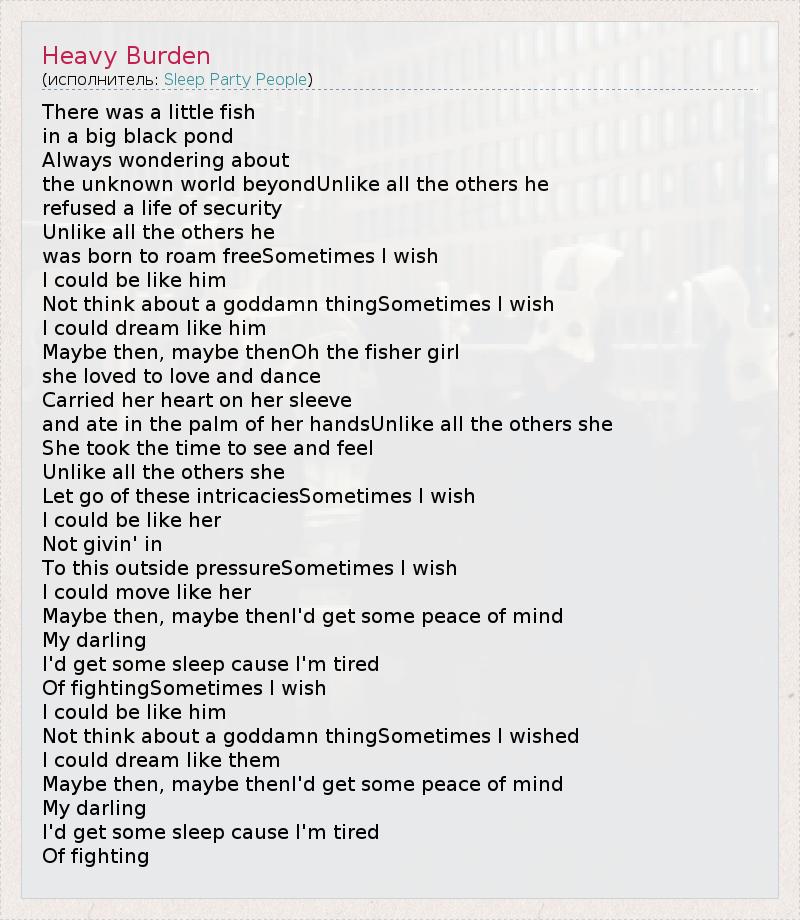 А как ты думаешь, о чем песня "Heavy Burden" ?