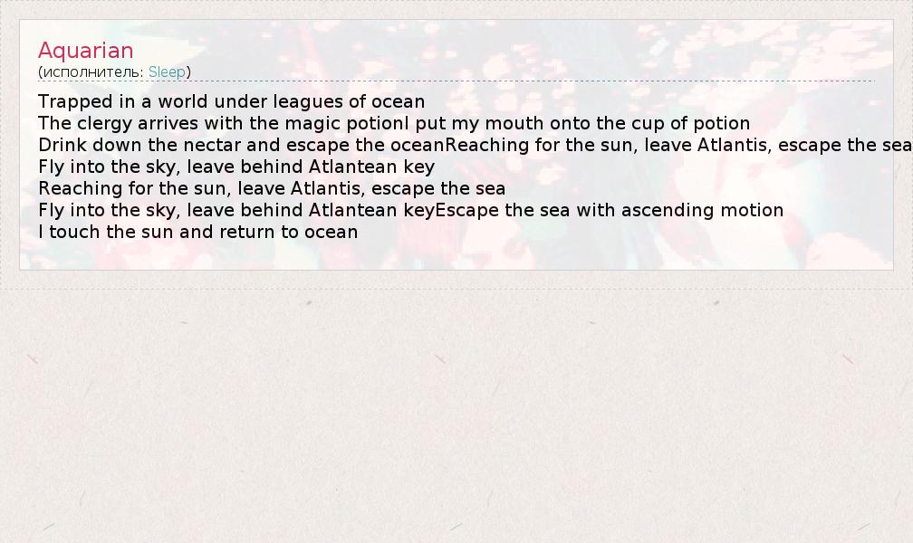 А как ты думаешь, о чем песня "Aquarian" ?