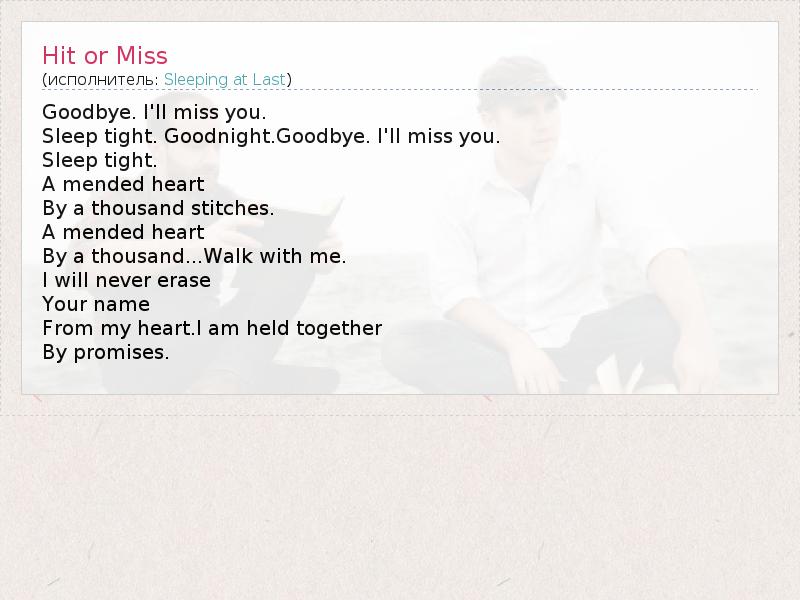 А как ты думаешь, о чем песня "Hit or Miss" ?