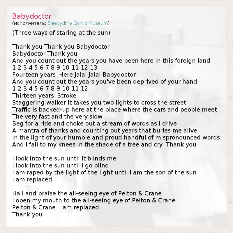 А как ты думаешь, о чем песня "Babydoctor" ?