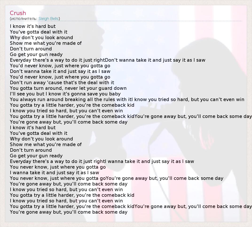 You gotta try a little harder, you're the comeback kidYou're gone away but, you'll come back some day