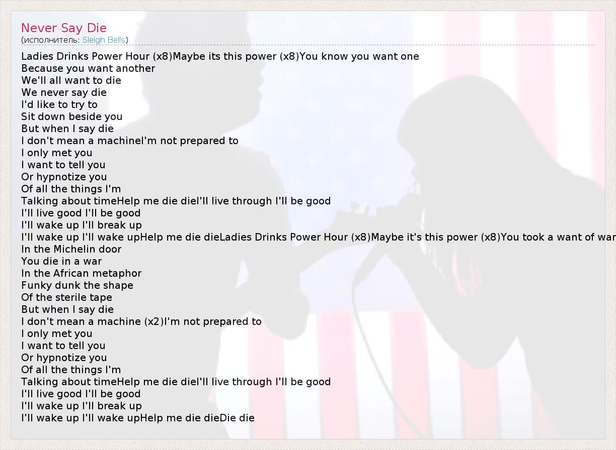 А как ты думаешь, о чем песня "Never Say Die" ?
