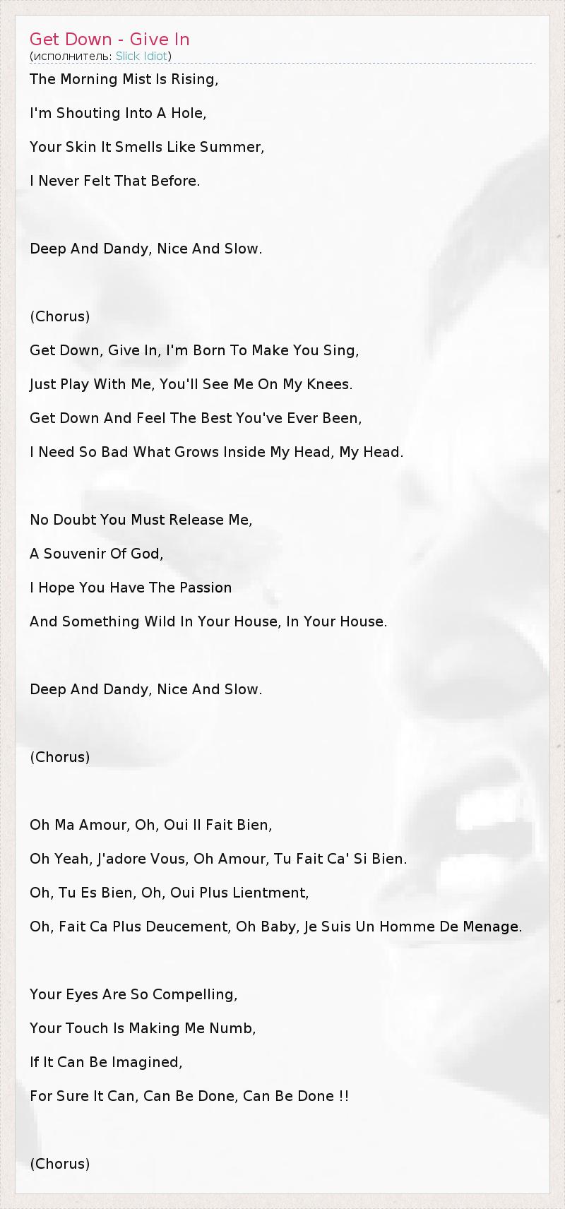 А как ты думаешь, о чем песня "Get Down - Give In" ?