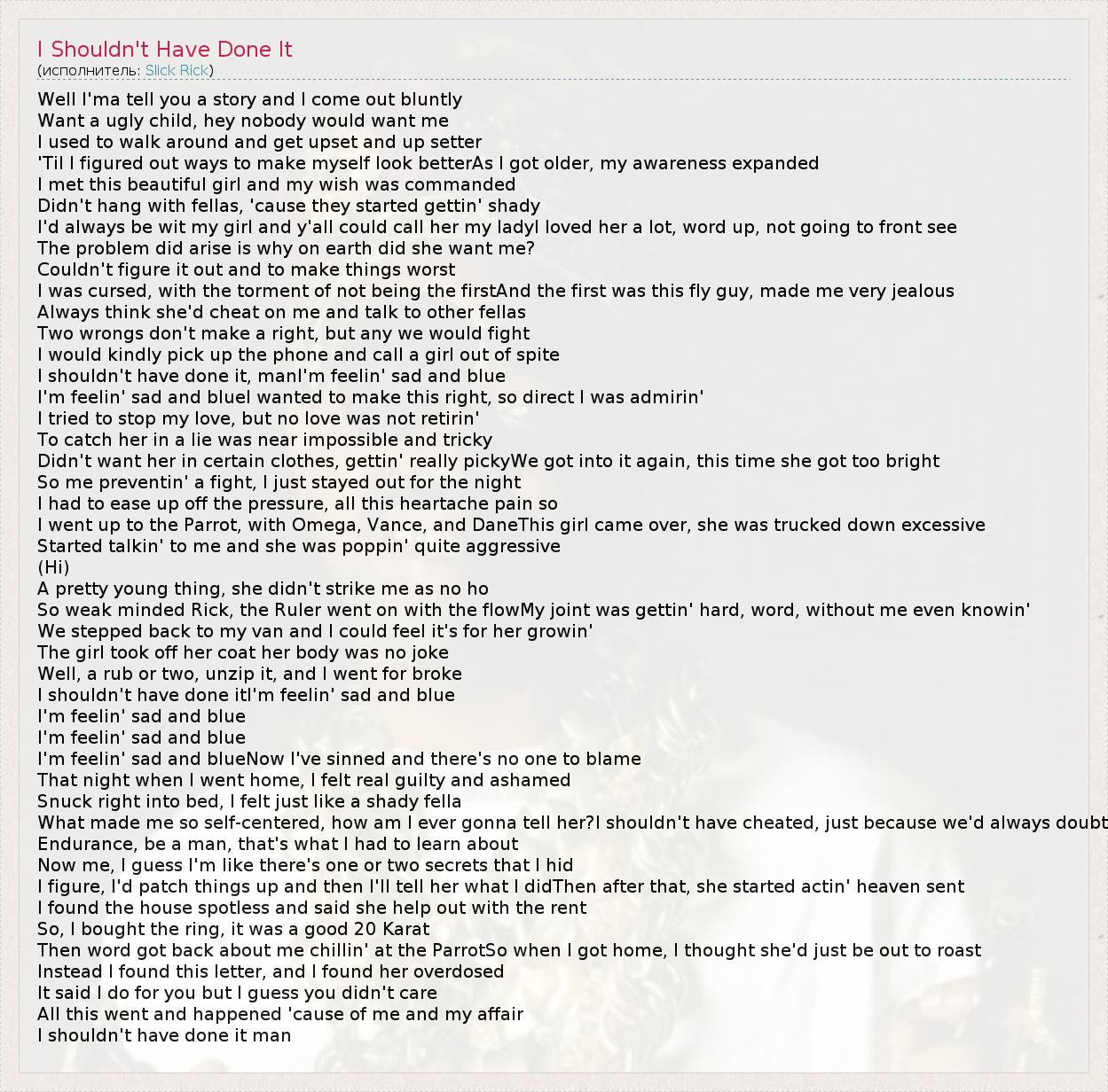 ГлавнаяИсполнителиSlick RickI Shouldn't Have Done It