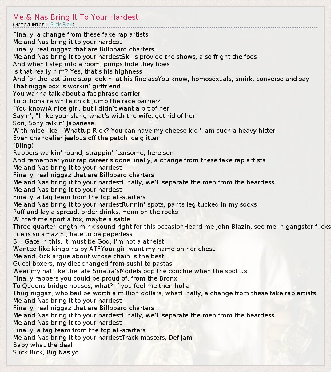 ГлавнаяИсполнителиSlick RickMe & Nas Bring It To Your Hardest