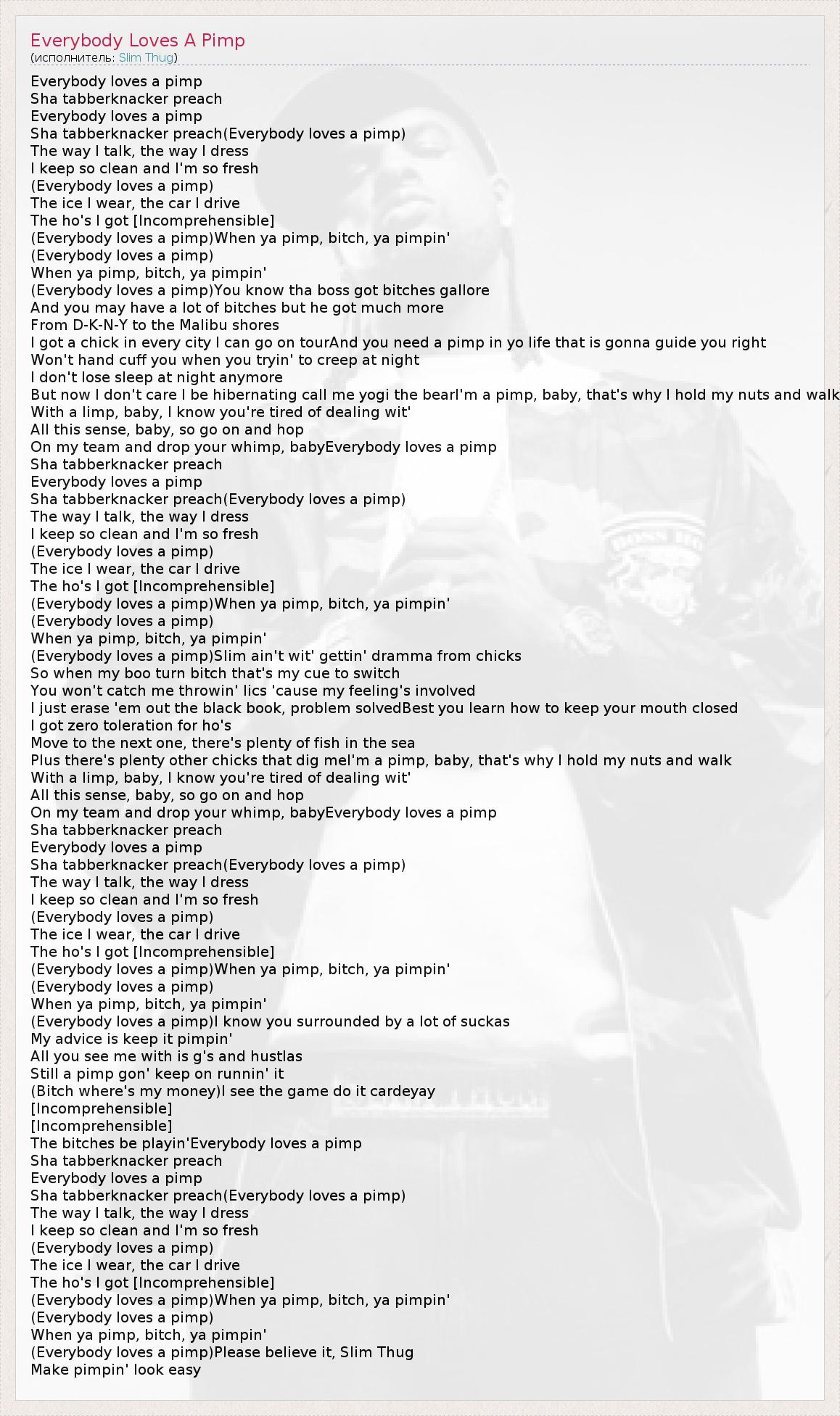 ГлавнаяИсполнителиSlim ThugEverybody Loves A Pimp