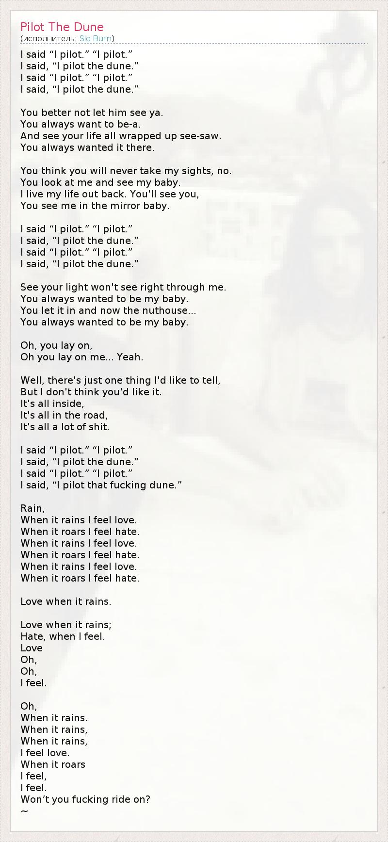 А как ты думаешь, о чем песня "Pilot The Dune" ?