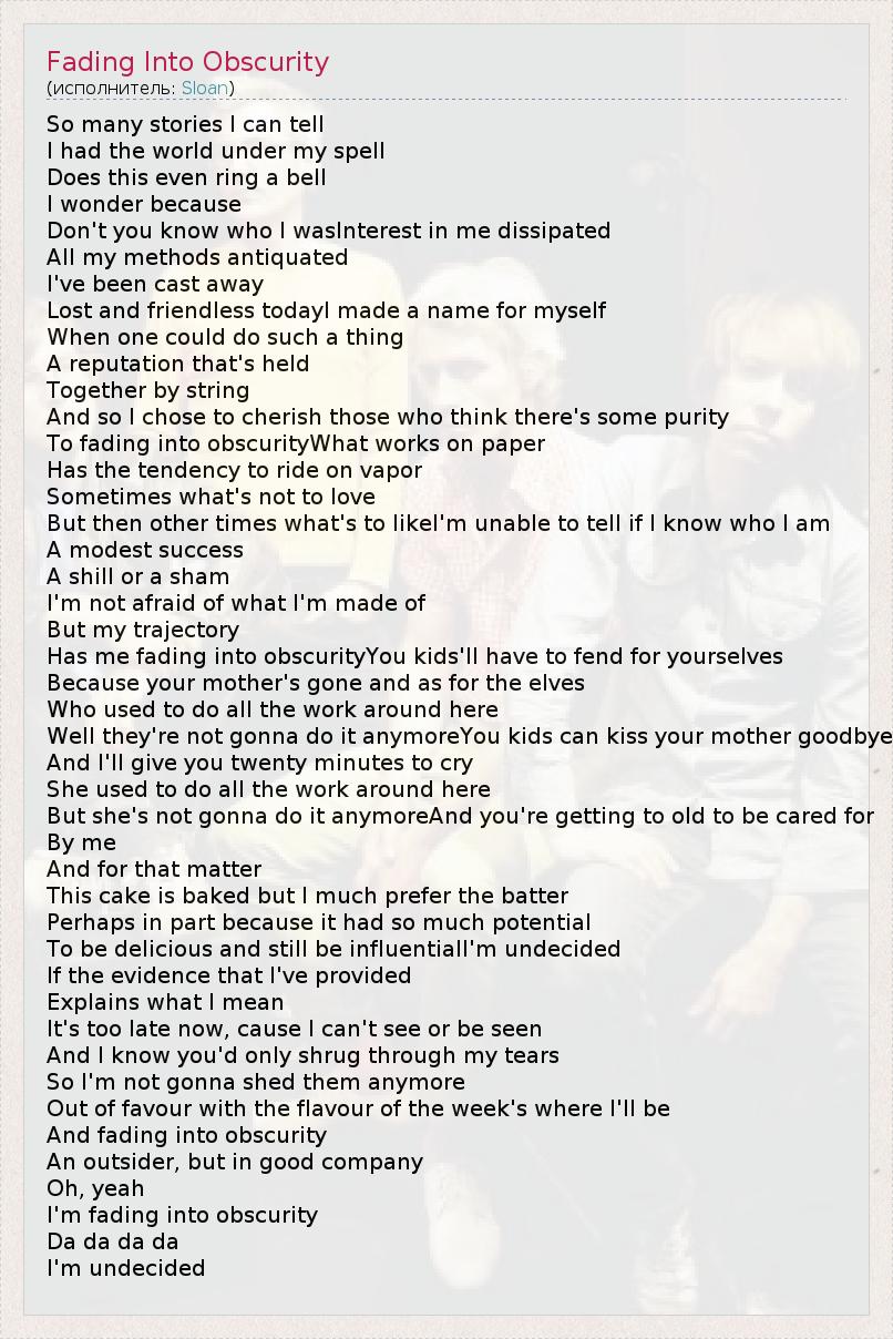 А как ты думаешь, о чем песня "Fading Into Obscurity" ?