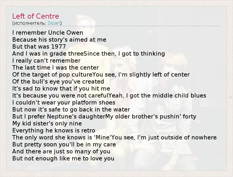 А как ты думаешь, о чем песня "Left of Centre" ?