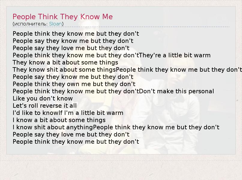 А как ты думаешь, о чем песня "People Think They Know Me" ?