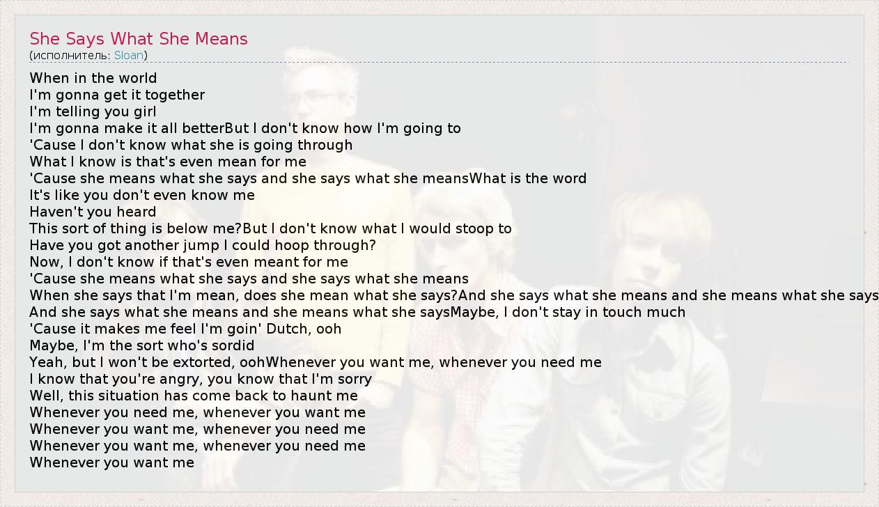 А как ты думаешь, о чем песня "She Says What She Means" ?