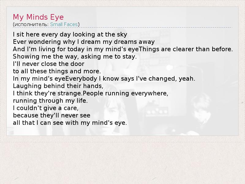 А как ты думаешь, о чем песня "My Minds Eye" ?